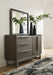 Clean lines lend sophistication and structure to this dresser with mirror. Its complex rich grayish brown finish contrasts perfectly with a white marble top, while the streamlined silhouette features overlay slats to create visual interest. A metal base and bar pulls in a low-sheen steel finish add to this piece's contemporary vibe.