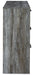 Casually cool style and lots of storage go hand in hand with this dresser with mirror. Its driftwood and smoky finish create an easy-going vibe that's perfect for setting the scene of a relaxed getaway. Six roomy drawers give you the space needed for stowing away clothes and more. Clean lines and modern handles provide a fuss-free look.