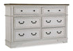 Traditional design. Casual appeal. You can have it all with this dresser. A relaxed two-tone aesthetic merges with ornate profiled drawer fronts and pilasters to give the distinctive piece an allure all its own. Expansive drawers with quality dovetail construction and dark bronze-tone hardware reflect attention to detail from the inside out.