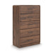 Grace your restful retreat with an added dose of refinement. This chest of drawers showcases a stunning rich brown wood tone, with sleek drawer pulls for an added layer of luxury. A rounded top softens the silhouette, elevating the look. It’s curated, contemporary and utterly chic.