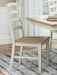 Busy breakfasts and family dinners get a dose of modern farmhouse flair with this dining chair. Its two-tone finish contrasts a light butcher block hue with an antiqued white frame for an utterly charming effect. A contoured seat elevates the comfort level. Complete with a ladderback design, it's an effortless seating solution with chic character.