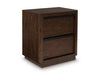 Casual contemporary styling with a decidedly modern vibe. This nightstand is warm and inviting with a rich dark brown finish, adorning your restful retreat with on-trend elegance. Full-length metal pulls in a matte black finish add a subtly cool touch to spacious bedside storage drawers. What a simply stunning way to achieve the bedroom of your dreams.