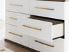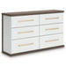 - Dresser with two-tone finish (dark brown finish over replicated walnut grain; matte white finish)