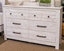 Looking to create a bedroom that feels airy and beautifully put together? This casually comfy dresser is your perfect solution. Its clean lines, whitewash finish and replicated pine grain exude a charming cottage-inspired feel that brightens your restful retreat. Six spacious drawers with simple dark bronze-tone knobs stow away clothes and more. Now there’s a fresh take on country living we can get behind.