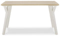 Bring light to your dining area with clean lines and a bright two-tone finish. The rectangular dining table sports stylized saber legs in a white finish for beautiful simplicity. The MEGA-TUFF® melamine top in a light tan color provides additional durability, marrying minimalism with big style for a delightful combination.