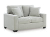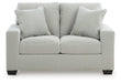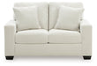 The crisp neutral hue and striking design details of this loveseat create a living room that expertly reflects your contemporary taste. For irresistibly cool textural appeal, the ultra-soft fabric is enhanced by a small-scale corded look. With a clean-lined silhouette complete with track arms, this loveseat allows you to take a trend-right approach to everyday living.