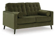 This loveseat strikes the perfect balance between elevated and eclectic. Contemporary lines and a richly hued velvet upholstery keep things chic. Design details like button tufting and splay legs add mod flair. It’s sure to keep your living room luxuriously on trend—at a price that won’t break the bank.