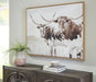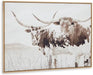 This wall art features a peaceful sepia-toned portrait of longhorn cows. This framed, gallery-wrapped canvas has a vintage vibe and natural charm well-suited for casual and farmhouse aesthetics. Measuring 48" W x 36" H, it makes for an effortlessly chic accent piece that can be hung alone or as part of existing décor.