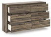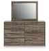 Casually cool style and lots of storage go hand in hand with this dresser and mirror. A weathered brown finish over replicated oak grain creates an easygoing vibe, setting the scene in your restful retreat. Clean lines and modern handles provide a fuss-free look. And the dresser's six roomy drawers give you plenty of space for stowing away clothes and more.
