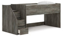 Cool, casual style is for all ages. With this twin loft bed, they get the function they need plus the refined design you love. Approachably neutral in a rustic warm gray, it’s adaptable enough to pair with an assortment of existing colors and room decor. Faux metal detailing with nailhead accents lends an industrial edge. And with its space-saving lofted design, this bed doubles as a storage solution or sleepover haven (matching trundle bed, bookcase and drawers sold separately).