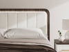 Looking to make a subtly striking statement in your bedroom? We've got you covered. This queen upholstered bed’s sophisticated two-tone treatment marries a warm brown finish over replicated walnut grain with a matte white finish. Highlighted with a wonderful white faux leather, the headboard features warm ambient lighting for that cozy feeling we all love at bedtime. Rounded corners radiate an air of modern panache. It’s a master class in contemporary yet comfortable character.
