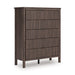 Crafted with both form and function in mind, this chest of drawers brings a dash of retro-cool character to your modern boho aesthetic. Reeded accents add an on-trend touch to its classic silhouette. Warmly welcoming with a rich brown finish, the piece pairs well with muted hues, earth tones and other neutrals alike. What a refined take on easygoing style.