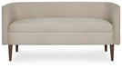 We love how this contemporary upholstered bench puts the accent on fresh fabric and clean-lined form. Chic and streamlined, its curved back and sleek tapered legs add just enough panache to the sophisticated silhouette. What a perfectly posh way to express your fine taste.