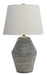 Product Details- Made of terra cotta and wood with modified drum hardback fabric shade