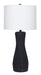 Stunning in its modern elegance, this table lamp knows how to make a statement. A sleek black textured finish accentuates the metal for an upscale look. What a winner by a sofa or bed.