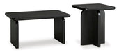 Flexible, functional and fashionable. Add casually cool flair to your living room with this coffee table and end table set. A sleek black finish suits a variety of color palettes, while soft architectural geometry brings flair to the clean-lined design. Crafted with versatility in mind, this table duo can be placed seamlessly in settings ranging from casual to refined.