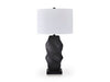 This table lamp puts a chic twist on casual lighting. Its base draws the eye in with a rich sense of movement, while the classic black finish has the versatility to pair with a variety of styles. Place it on a desk or end table for instant functional flair.