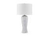 Classic sophistication meets modern sensibility. The gracefully fluted base of this table lamp brings a dynamic feel to the white shade's crisp look. Finished in a versatile antiqued gray, the transitional piece effortlessly bridges casual and contemporary design.