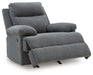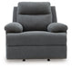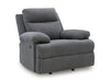 Fully upright or completely stretched out is how this traditional-inspired rocker recliner caters to the art of relaxation. Super soft charcoal-colored upholstery and sumptuous cushioning—made all the more indulgent with pillow top arms—cradles you in comfort from head to toe.