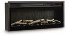 Nostalgic style, retooled for today’s trends. This TV stand with electric fireplace puts an elevated twist on mod aesthetics. Its warm brown tones reflect the mid-century vibes you love, while the angular base incorporates contemporary motifs. Integrated drawer handles round out the look in sleek style. For added ambiance, the electric fireplace brings a cozy-cool vibe to your living room. With the touch of a button, activate the LED-lit flame and adjust the temperature or the flame brightness. The flame effect includes multiple color options and a realistic-looking faux birch log set.